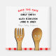 Creative summer save-the-date magnets featuring cartoon fork and spoon bride and groom.