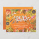 Save The Date Wedding Invitation Postcard Templates - Elegant Autumn Maple Leaves, Pumpkins and Sunflowers Watercolor Flowers on Orange Gradient Background.