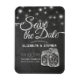 Rustic Wedding Save The Date Magnets Templates - Elegant Save The Date Lettering Script and Vintage Mason Jar String Lights with Grunge Black Chalkboard Background.