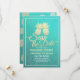 Save The Date / Wedding Invitation Card Templates - Elegant Faux Gold Foil Pineapple Couple on Teal Green and Turquoise Blue Roses Floral Damask Paper Background.
