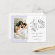 A beautiful Save the Date postcard featuring your photo framed by a soft purple way and accented with a hand-lettered Save the Date script calligraphy and botanicals graphic. Add your names and date to customize. On the backside more wedding details. Simple and classic yet elegant and chic - coordinates well with so many of today's wedding styles.