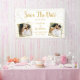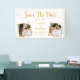 Share your save the date announcement with this fun, unique sign/banner that the two of you can hold up to tell everyone you've set the date. Design features 2 photos and custom text set against a white background accented with faux gold glitter confetti sparkles. Fun and festive yet elegant and chic - coordinates beautifully with so many of today's wedding styles. Perfect for holding up during your engagement photo or hanging during an engagement party.