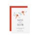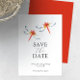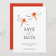 Announce your big day with this classy wedding save the date card, featuring a graceful watercolor red dragonfly on a crisp white background. Designed to complement a wedding theme with red dragonflies or a bold red, white, and black color palette, this card blends modern elegance with a touch of whimsy—perfect for Indian wedding themes or any couple looking for unique save the date ideas.
