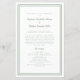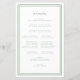 Elegant, minimalist sage green & white wedding ceremony program features a simple modern design with a double framed border in rustic sage green on a crisp white background. Traditional, classic wording provides timeless sophistication. Personalize wedding ceremony details for your guests in trendy calligraphy lettering and script. The back of the card matches with sage green on crisp white and is all about your wedding party. For optimal results replace template details with your own details leaving space between paragraphs as in the example. Capitalize & use all lower case where specified. Feel free to contact me at invitationsuites@gmail.com or with the message feature if you have questions regarding this or any of our products or have a custom color request.