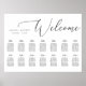 Welcome your wedding guests with this classic seating chart featuring modern calligraphy. This wedding poster includes enough room for up to about 120 guests. Make room for more (or less) guests by clicking the "customize" button and decrease or increase the font size. Extra tables can also be deleted. In addition to the placement of each guest, personalize this sign with the names of the bride and groom and the wedding date.