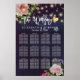30+ Tables Wedding Seating Chart Poster Templates - Elegant Script, Watercolor Floral Pink Roses and String Lights on Purple Sparkle Bokeh Lights Background.