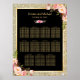 Gold Glitter Sparkling Pink Floral Wedding Seating Chart Poster.