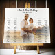 A wedding seating chart poster with photo is a beautiful and functional way to display your seating arrangements at your wedding. This type of poster features a photo of the happy couple as the centerpiece, with the seating chart arranged around it in an elegant and easy-to-read format. Guests can easily find their assigned seats and get a glimpse of the newlyweds at the same time. The poster can be customized to match your wedding theme and colors, making it a lovely addition to your décor. It can be printed on a variety of materials, such as canvas, paper or cardstock, and can be kept as a cherished keepsake after the wedding.