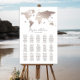 Elegant wedding seating chart featuring a simple design with your names, guest names and a world map. Just edit the tables and names. Available in printed format or as downloadable file.
