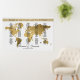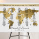 Modern wedding seating chart featuring a simple design with your names over a golden world map. Just edit the tables and names. Available in printed format or as downloadable file.