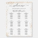 A stylish white background decorated with faux gold glitter dust. Personalize and add your names and guest names. Templates for 9 tables.