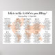 Wedding Seating Chart with Blush World Map. Name your tables and assign your guests.