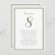 Our trendy wedding table number guest list features a template for the table number & list of guests at the table. Personalize elegant lettering and script with your guest's names & details in rustic olive green on a crisp white background. Perfect addition for a wedding, anniversary or large engagement party. The reverse side is a duplicate of the front allowing for easy viewing from both sides. Custom color request accepted.