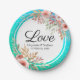 Wedding Shower Elegant Pink Floral Teal Gold Dots Paper Plates