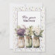 A pretty floral frame on a set of three mason jars filled with flowers for a wedding shower card.
