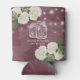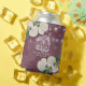 Wedding Shower Can Cooler / koozies Templates - Elegant Script, Mason Jars, Hydrangea Flowers and String Lights on Burgundy Red Floral Linen Background.