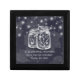 Modern Wedding Gift Box Templates - Elegant Mason Jar and String Lights on Navy Blue Floral Linen Background.
