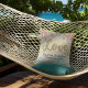 Wedding Shower Throw Pillow Templates - Summer Sandy Beach Write in Sand Text with Starfish and Seashell.
