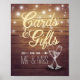 Wedding Gift Table / Cards and Gifts Wedding Decor Sign Poster Templates - Elegant Gold Lettering Script, Vintage Champagne Glasses and String Lights on Rustic Wood Background.