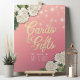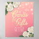 Wedding Gift Table / Cards and Gifts Wedding Sign Poster Templates - Elegant White lovely Watercolor Hydrangea Flowers and String Lights on Pink Gradient Background.