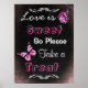 Black and Pink "Love is Sweet, so Take a Treat" black wedding sign faux chalkboard sign for a candy bar at a wedding or baby shower.