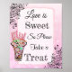 Whimsical green "Love is Sweet, so Take a Treat" Wedding Sign for Candy Buffet, Pink sign for a candy bar at a wedding or baby shower.