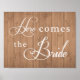 Country chic, rustic and barn wedding "Here comes the bride" sign. Great for flower girls and ring bearer. Take out the wood grain to get a simple black background, or look for the chalkboard version in our shop. Add a special touch to your wedding, more wedding signs in our shop: http://www.zazzle.co.uk/designbyredline/gifts?cg=196521080171907543