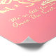 Pick A Seat Not A Side Wedding Sign Poster - Elegant White lovely Watercolor Hydrangea Flowers and String Lights on Pink Gradient Background.