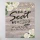 Pick A Seat Not A Side Wedding Sign Poster - Elegant White lovely Watercolor Hydrangea Flowers and String Lights on Rustic Wood Background.