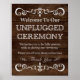 Rustic Unplugged Ceremony wedding sign inwooden background pattern.
