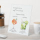 This elegant wedding signature drinks pedestal sign features a modern minimalist design with a crisp white background and refined typography, creating a sophisticated and stylish look. Choose from over 50 beautiful watercolor illustrations of cocktails to add a vibrant and artistic touch, showcasing the couple’s personalized drink selections. Perfect for bar displays at weddings, this sign helps guide guests to the couple’s favorite beverages while enhancing the overall wedding décor. Ideal for contemporary, classic, or garden-themed weddings, this customizable sign blends elegance and functionality, making it a charming addition to any reception.