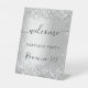Wedding silver glitter name script welcome pedestal sign