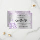 A modern faux silver looking background decorated with purple faux glitter, sparkles and a dress. Personalize and add a date and names. The text: Save the Date is written with a large trendy hand lettered style script.