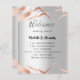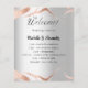 A wedding timeline, program. A stylish faux silver looking background decorated with rose gold marble veins. Personalize and add your names and the program. Black letters.