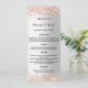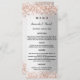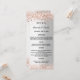 An elegant, glamorous wedding menu card. Personalize and add your names, date and the wedding menu. Faux silver looking background, decorated with rose gold confetti.