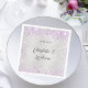 A faux silver looking background decorated with purple faux glitter, sparkles. Personalize and your names and the wedding date.