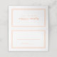 Simple, minimalist and chic Wedding Guest Place cards feature a modern design with a double framed border in trendy peach on a crisp white background. The modern design is simple and fresh. Personalize wedding details for your guests in elegant peach lettering and script. The back of the card features a matching design personalized with the name of the bride and groom. The card is beautifully completed with crisp white on the inside for an understated elegant look.