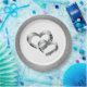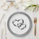 Wedding party paper plate shown in a Silver faux glitter print around the rim with a two hearts print design in the center.