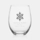 These elegant minimalist stemless wine glasses make great bridal party gifts or wedding favors. Clean minimal design features your names, wedding date, and location in classic black serif lettering. A big snowflake make this glass great for mountains destination weddings.