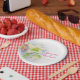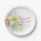 Beautiful loose watercolor Spring hellebores in red pink and green yellow white wedding paper plates. A great personal addition to your Spring wedding tables. Personalize with your bride and grooms names. Perfect for Spring, wildflower themed or garden wedding or lovers of hellebore flowers. Unique original painting in watercolor and design by Sarah Trett www.sarahtrett.com for www.mylittleedenweddings.com