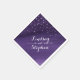 Beautiful stylized watercolor wash night sky with graphic stars and your own wedding dinner or wedding party paper napkins. A great personal addition to your wedding tables in white and dark purple blue. Personalize with your names. Design and graphic art by Sarah Trett.