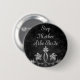 Gorgeous pin on button in a grungy black with a fancy leaf design on it in silvery gray. "Step Mother of the Bride" is written at the top.