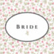 This wedding sticker is for the bride. Petite and sweet pink roses adorn the sticker with an oval of black and white with the text of