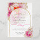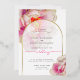 WEDDING | Modern text fits nicely inside this beautiful sheer white gold edged arch frame that shows the underlying fantasy bright fuchsia scarlet peony flower edged in gold - original artwork © by WhimsicalArtwork™.