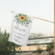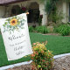Welcome to an elegant wedding reception, party. A chic white background. Decorated with a golden watercolored sunflower and eucalyptus greenery. Personalize and add the names of the bride and groom.