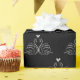 Contemporary white wedding swans design with a scribbled heart between them on a black background.