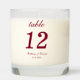 Wedding Table Number Bride & Groom Names Burgundy Scented Candle