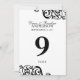 Guide you guests with these elegant wedding table cards. Tasteful scrolls adorn these cards with a clear distinct number. Personalized the header with your names and wedding date. Input a table number and add one card to your cart. Go back and change the table number so you have one card for every table. Numbers do not serialized on their own. There is no minimum so you can buy the exact amount you need for your big day.