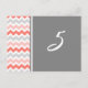 Elegant and classic peach orange pink, gray and white wedding table number cards with retro and fun chevron zigzags pattern. Customize these cards to create custom table number cards for each table at your wedding. Pattern available in a wide range of matching wedding products.