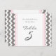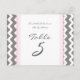 Elegant and modern light pastel blush pink, dark charcoal gray and white wedding table number cards with fun retro chevron zigzags stripes pattern. Customize these cards to create custom table number cards for each table at your wedding. Add your names and wedding date. Pattern available in a wide range of matching wedding products.